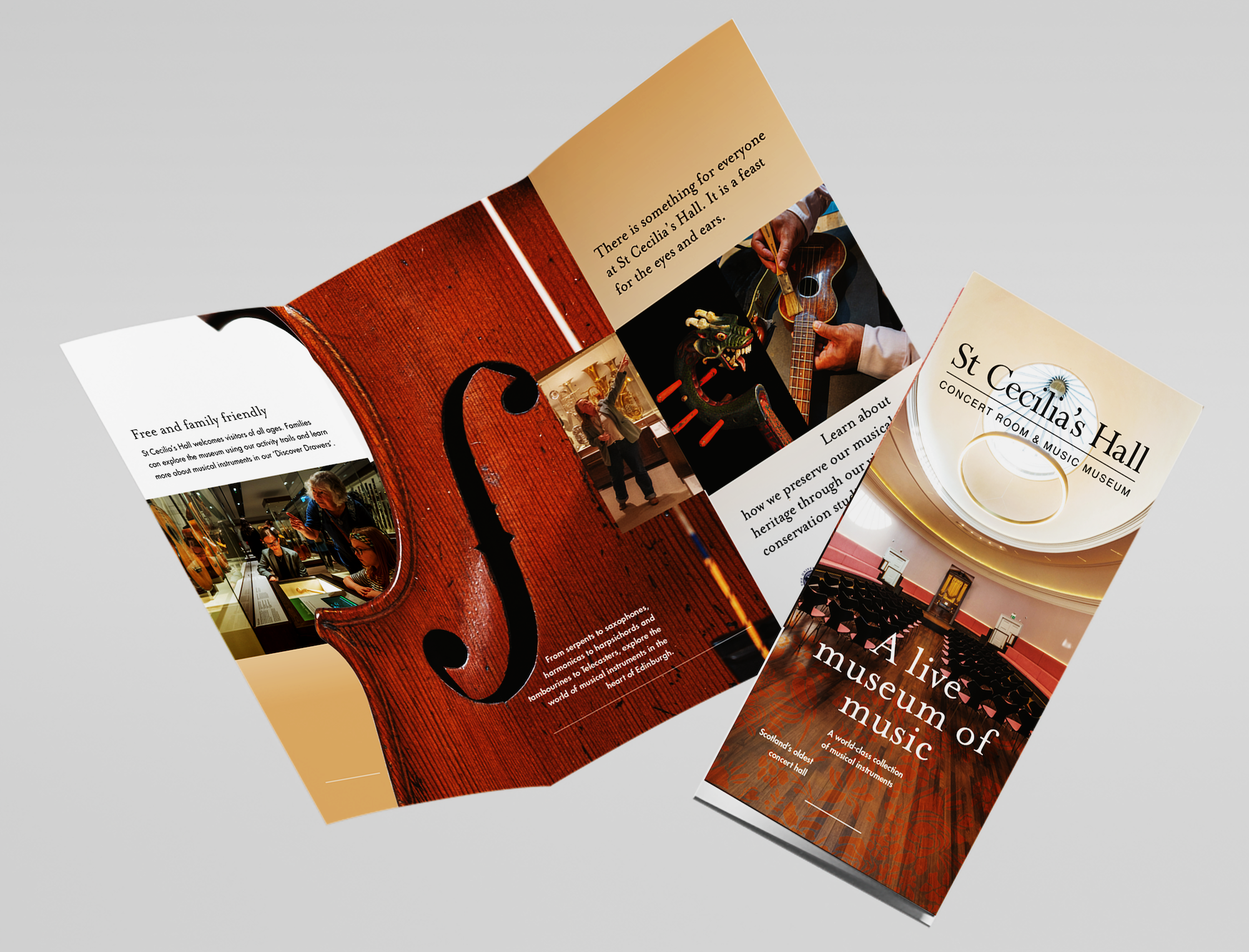 The St Cecilia’s Hall leaflet was designed to inform and engage, showcasing the University of Edinburgh’s historic Concert Room & Music Museum and celebrating the breadth of its cultural and musical collections through clear, accessible storytelling.